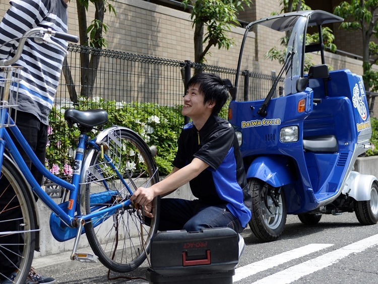 突然のパンクやチェーンが外れて困ったときは、ダイワサイクルの出張修理!