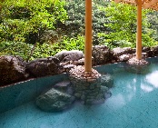 全ての客室より鶴仙渓を一望。温泉は源泉より引くまろやかな湯を、大浴場・露天風呂・立ち湯でお愉しみいただけます。