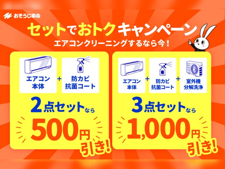 エアコンクリーニング+オプションセットをご注文の場合、通年優待価格(おそうじ革命通常価格の10%off)からさらにお得!
